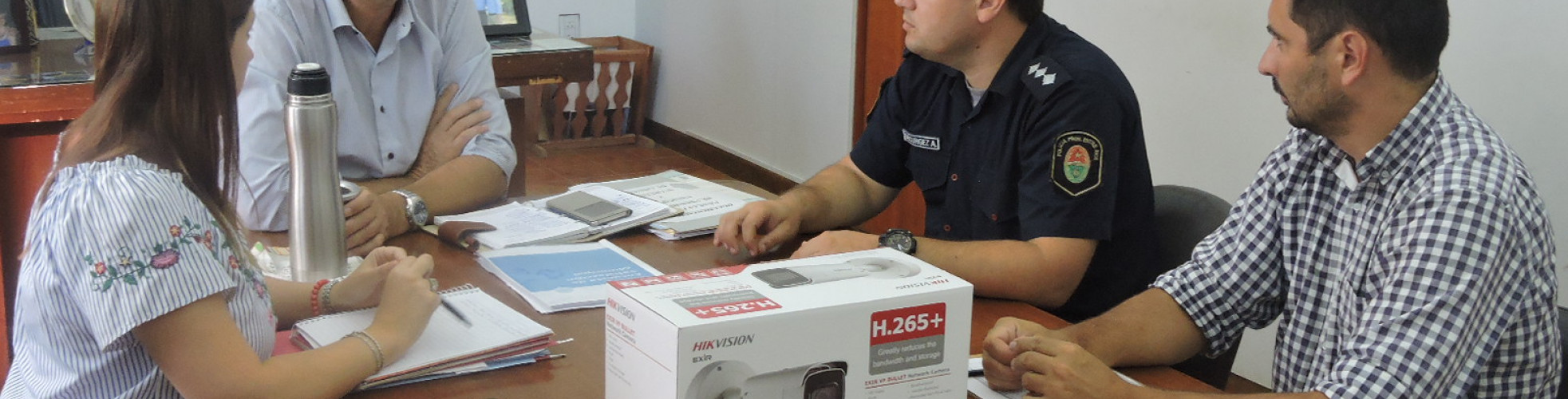 El Presidente Municipal, Gustavo Hein, y funcionarios de su equipo de gestión se reunieron con el Oficial Alberto Decurgez, para avanzar en la firma de un Convenio de Colaboración con la Policía de la Provincia de Entre Ríos, el cual se concretaría en los próximos días. Mediante este documento se van a adquirir formalmente videocámaras de toma de imágenes y sistema de monitoreo enviadas por el Gobierno Provincial, con la finalidad de garantizar la convivencia ciudadana, la utilización pacífica de los espacios públicos, a la prevención de delitos y faltas de cualquier naturaleza. Todo lo detallado sin poner en riesgo las garantías de los derechos fundamentales y las libertades públicas de los ciudadanos. Los equipos de última tecnología ya se encuentran en poder del Municipio y serán puestos a disposición de la Policía de Entre Ríos, local (Autoridad de Aplicación), la que tendrá a su cargo el manejo operativo del mismo, quien dispondrá del personal, y logística necesaria para la ejecución de tal tarea en conjunto con el Municipio. 8 cámaras y 2 domos se ubicarán estratégicamente en la ciudad, siendo colocados por personal municipal con la colaboración técnica de la empresa de TV “Delco Imagen”.